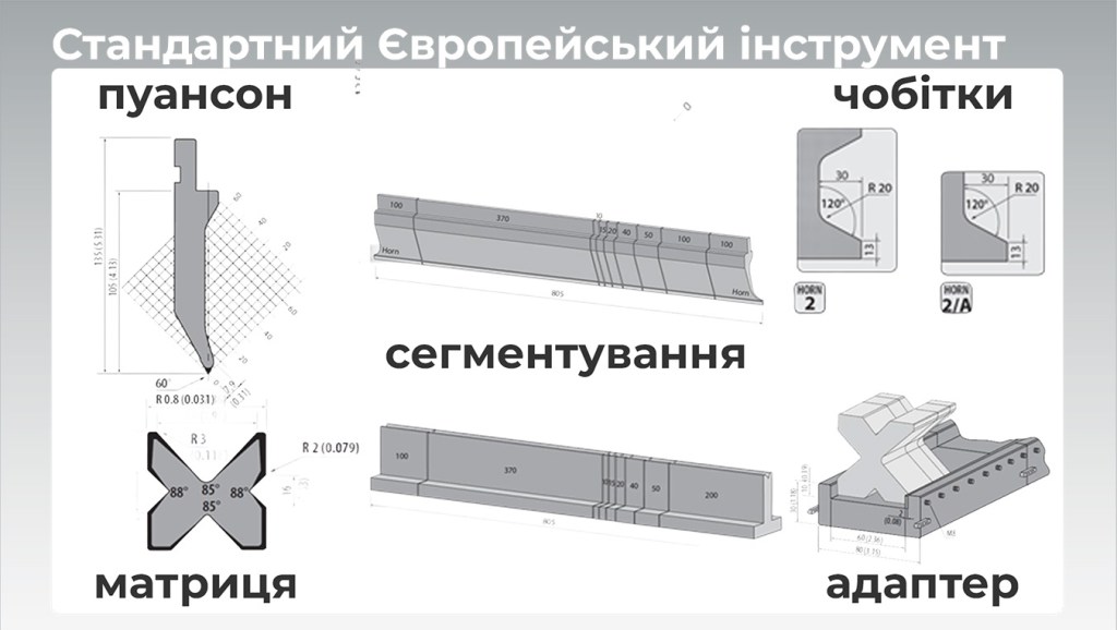 • Пуансони по довжині пресу сегментами по 835 мм.
