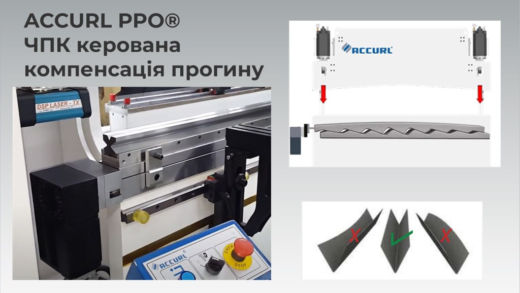 У цій системі верхня та нижня хвилі створюють стабільний вигин до центру столу або станини, значення встановлюється автоматично на основі запрограмованої деталі.